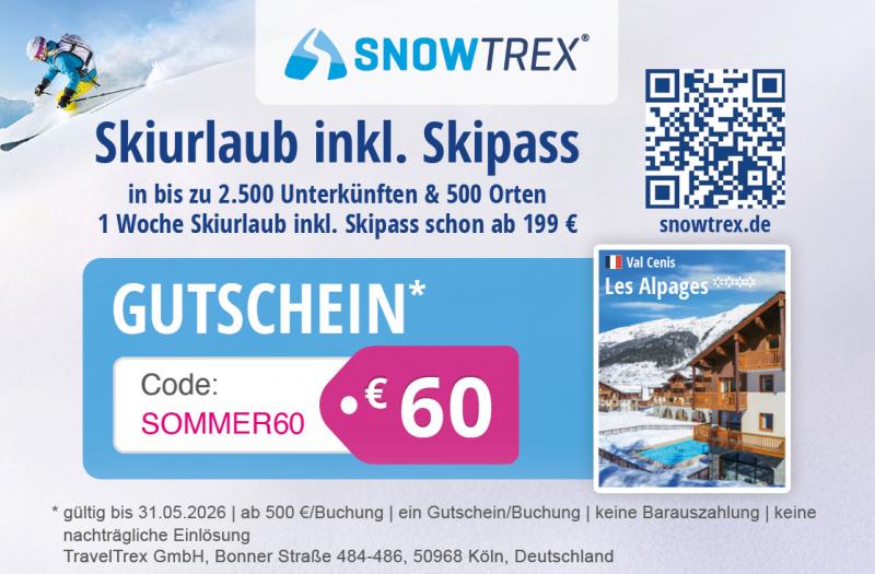 • 60 € Rabatt auf Deinen Skiurlaub bei SnowTrex – Skireisen inkl. Skipass ab 199 €
