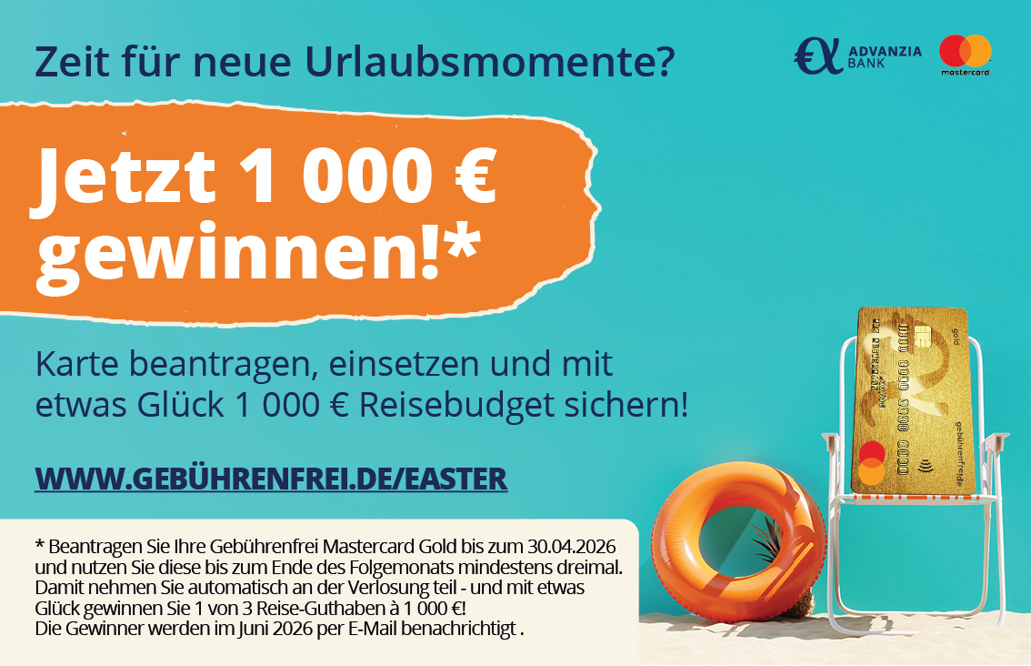 Zeit für neue Urlaubsmomente? Jetzt 1.000 € gewinnen!* Karte beantragen, einsetzen und mit etwas Glück 1 000 € Reisebudget sichern!