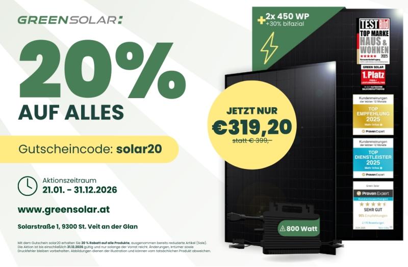 • 20% AUF ALLES BEI GREEN SOLAR